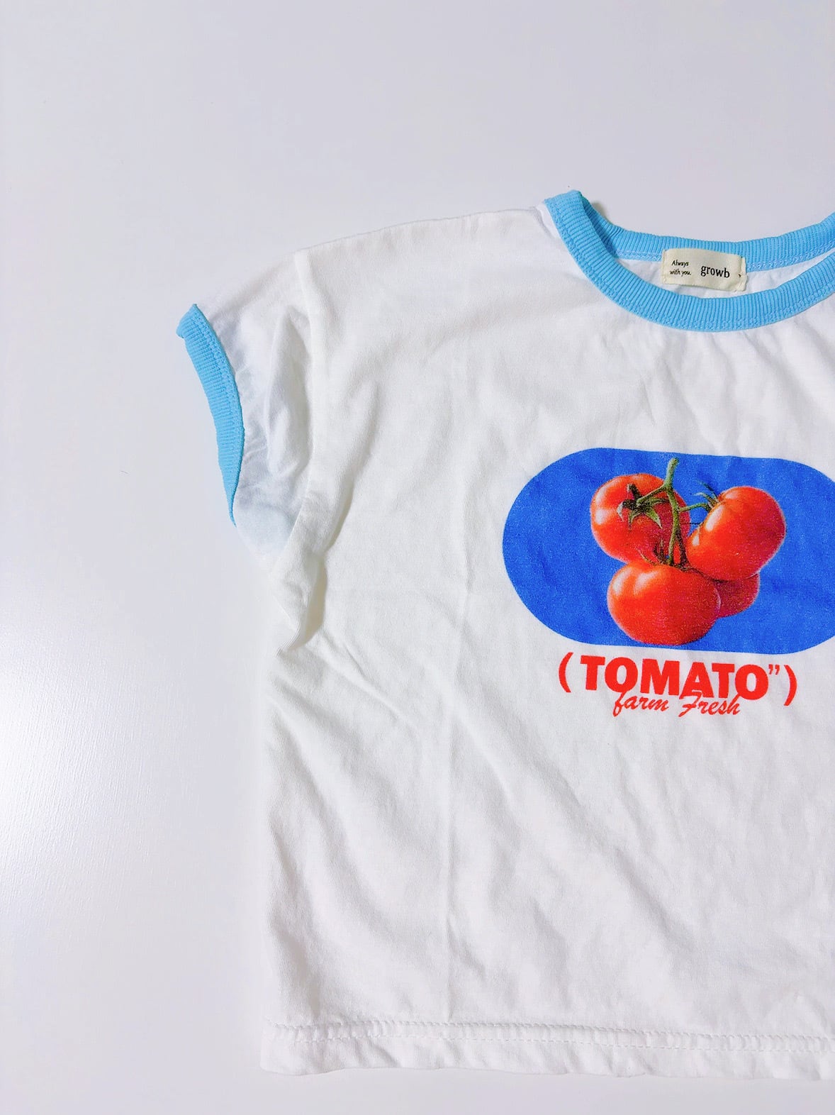 ころんと可愛いトマトが3つ、青空みたいな背景に