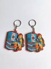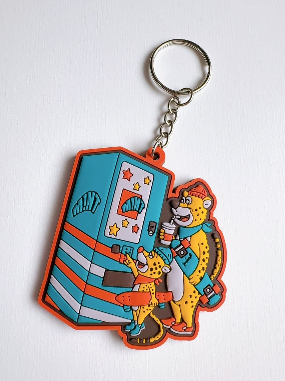 ミント親子の世界観がぎゅっと詰まった、カラフルで丈夫なキーホルダーです。