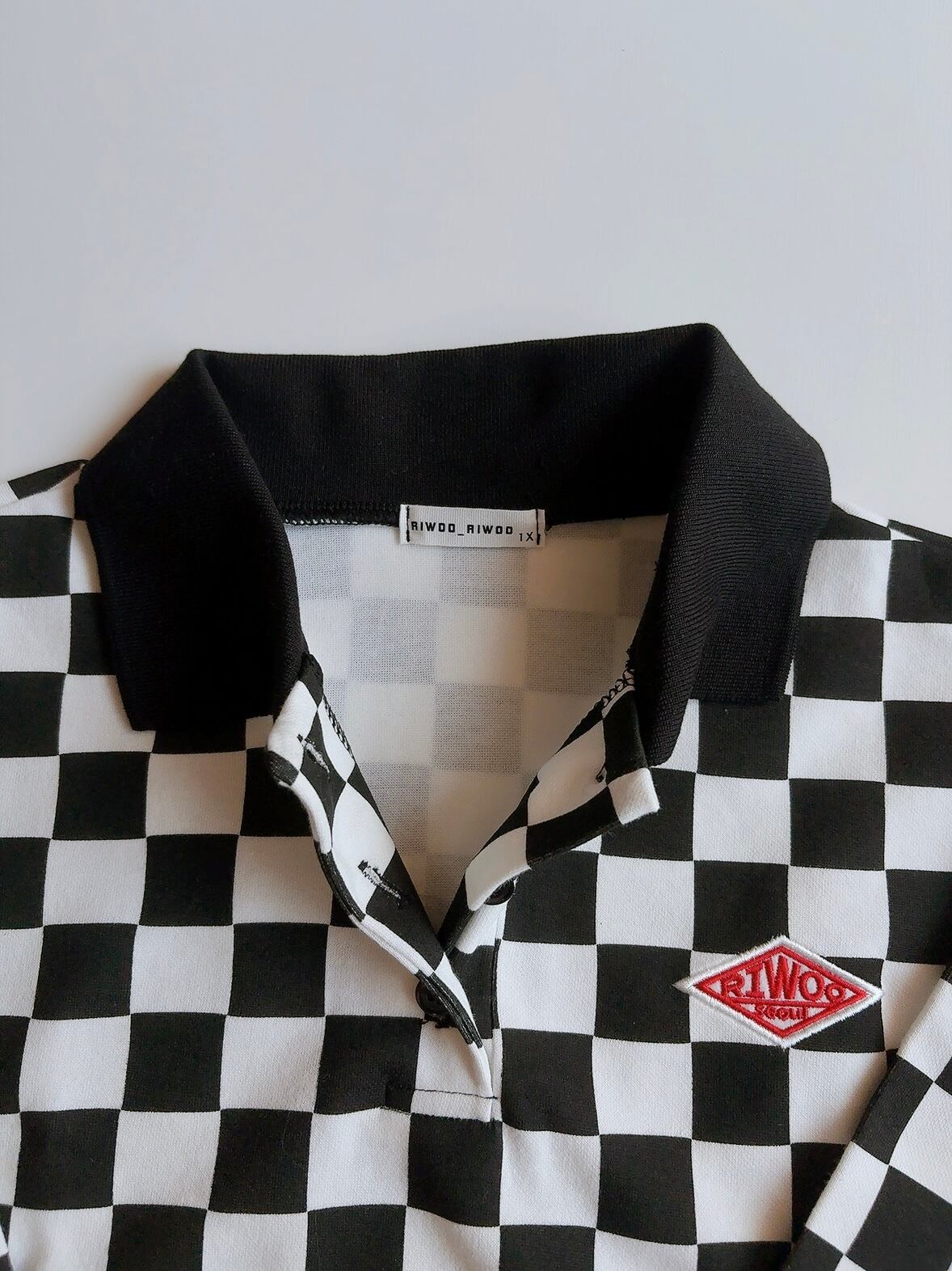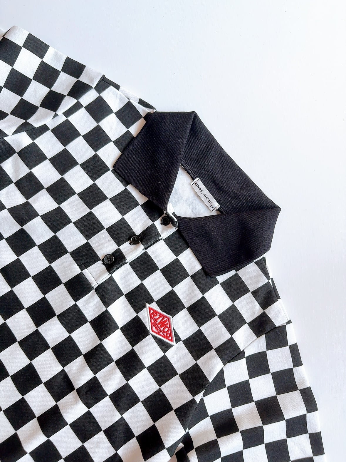チェッカー柄が魅力的なデザインで、カジュアルながらもおしゃれ感を演出するポロシャツです♡