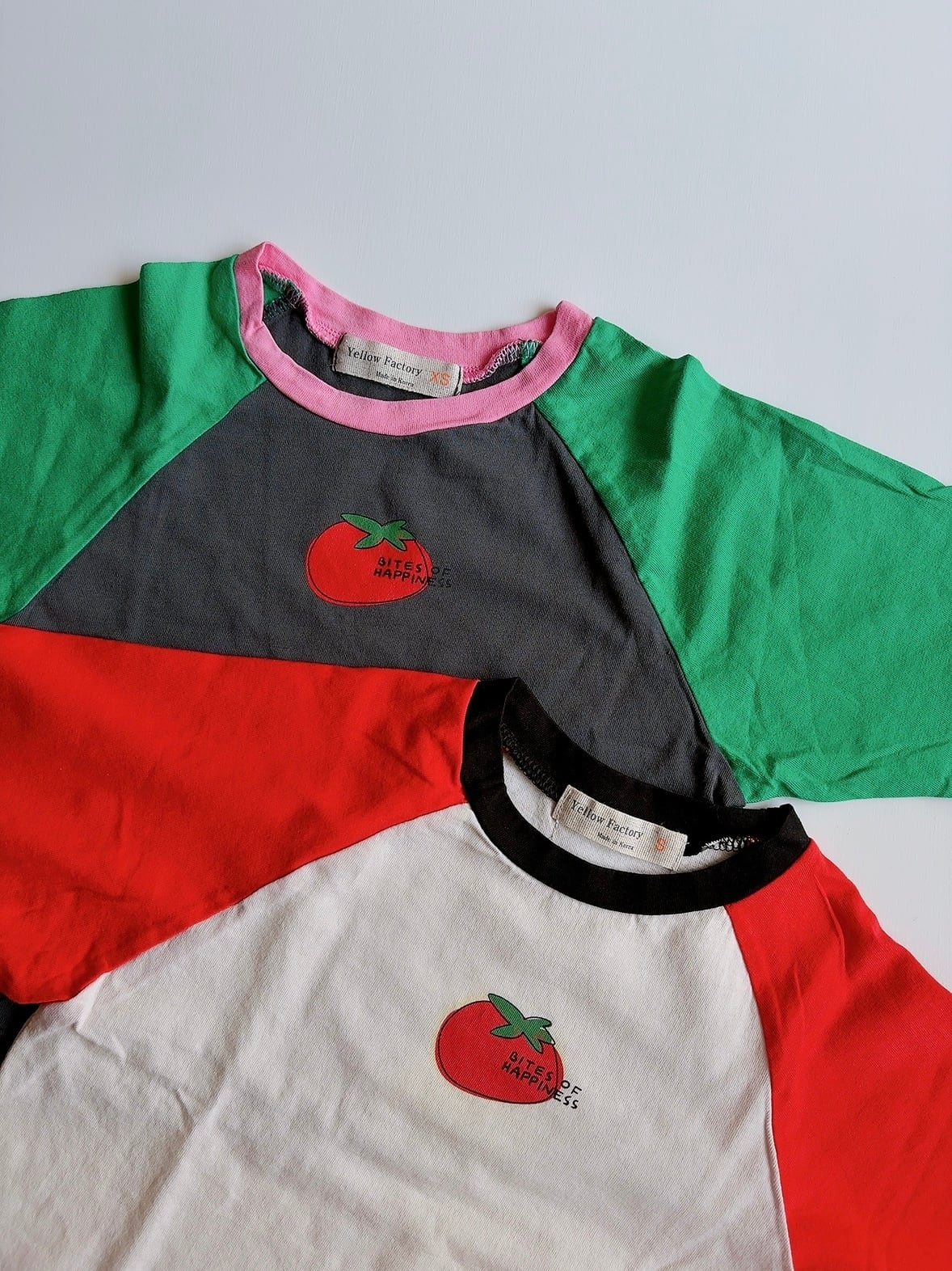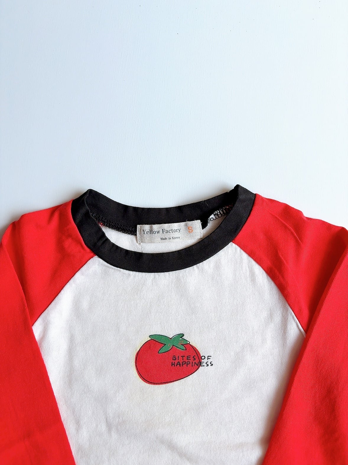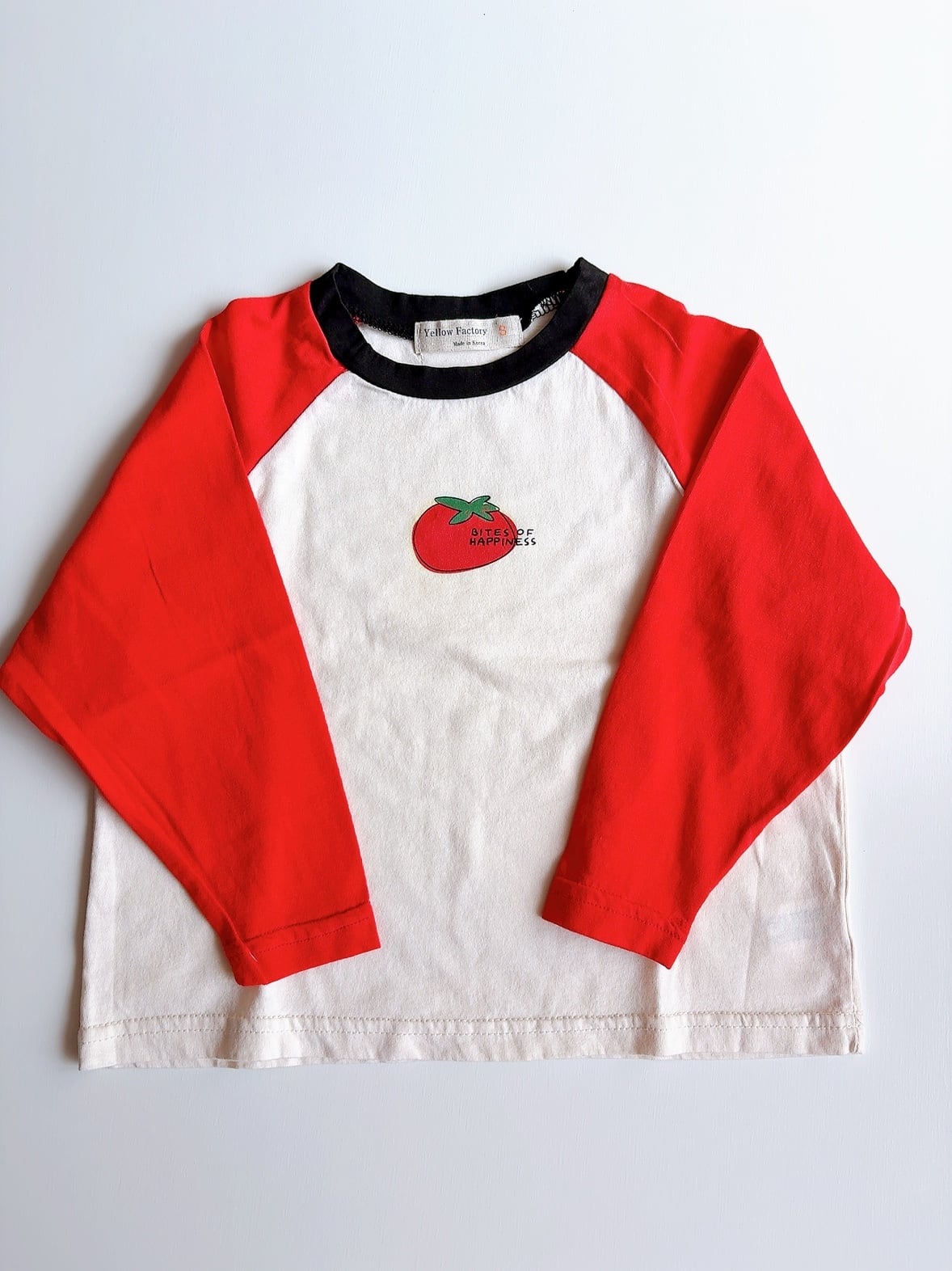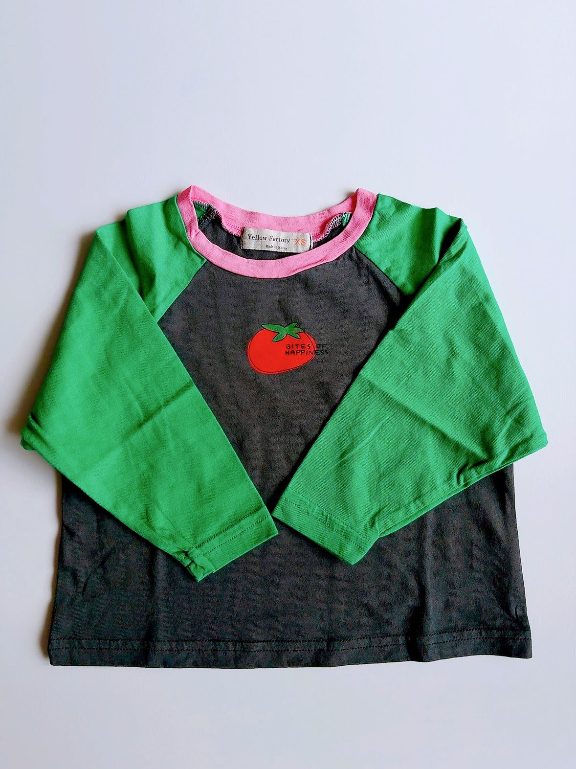 トマトがポイントの切り替えロンTは、トマトのかわいらしいワンポイントがデザインが