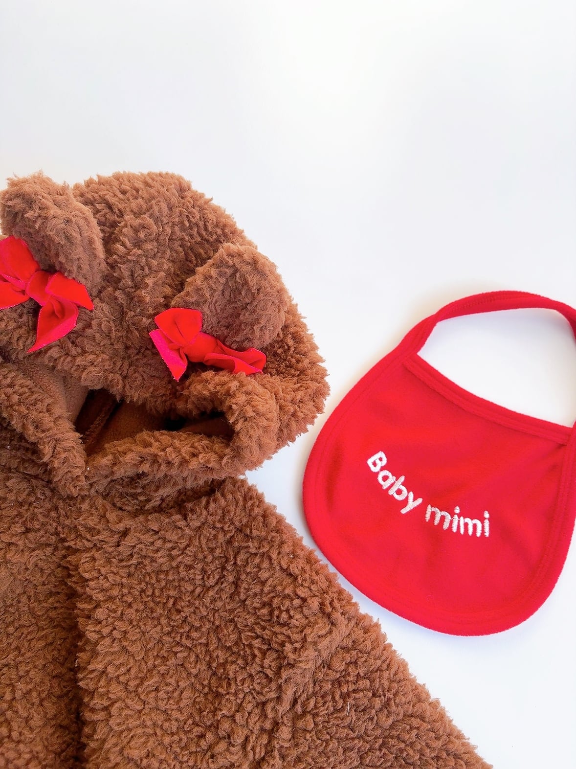 ふわふわ素材にくま耳、そしてちょこんと並んだリボン…まるでぬいぐるみみたいな愛らしさ!スタイは取り外し可能。写真映えも抜群でおうち時間もお出かけも、主役級の可愛さを独り占めです!