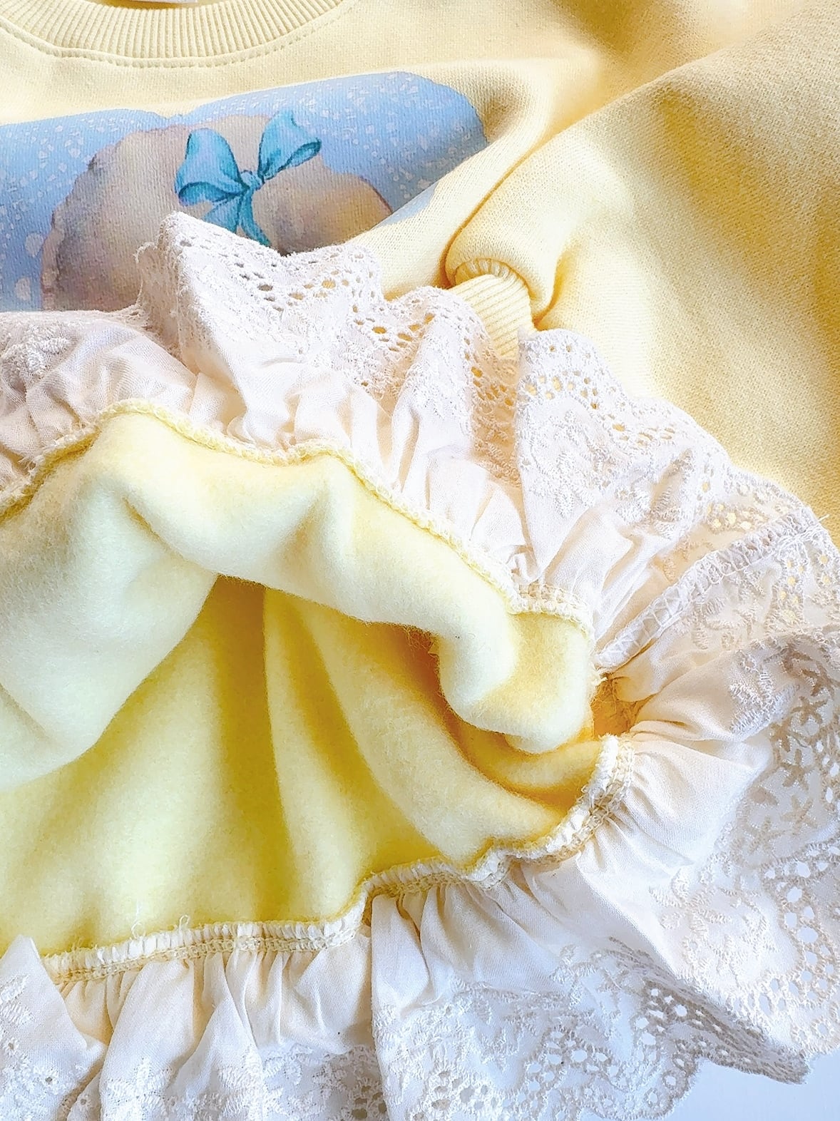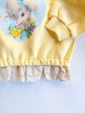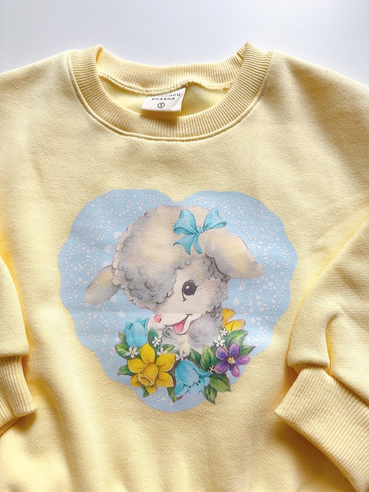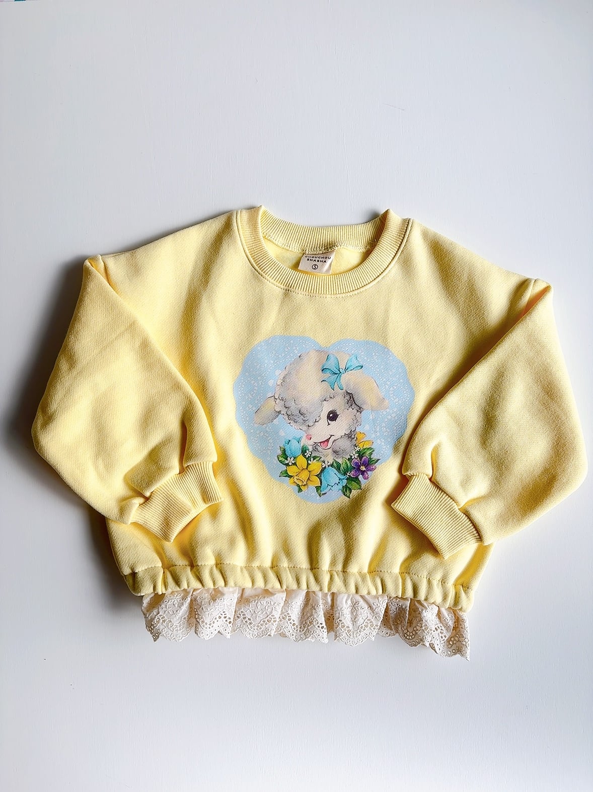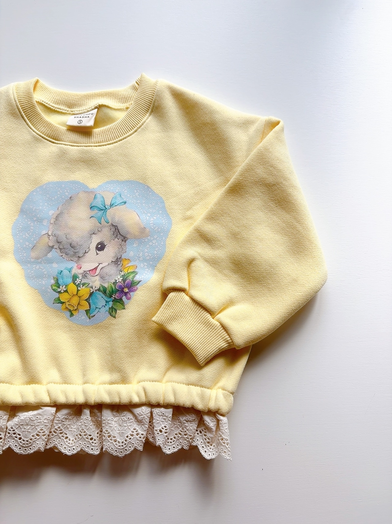 ひつじちゃんに裾のフリル。レトロさも感じさせる甘さと遊び心満載のスウェット。まるで絵本の1ページのような可愛さです。