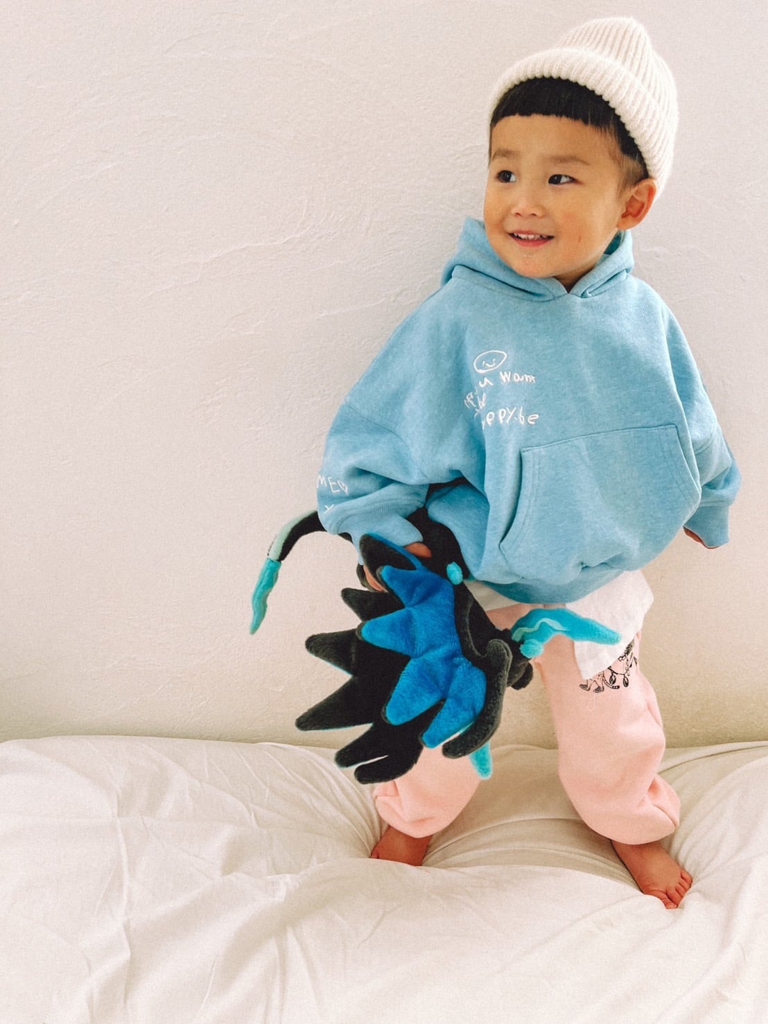 胸元とお袖元にオーナーあいちゃんの愛娘♡さくちゃんの落書き風デザインが施されたこちらのフードパーカーはカジュアルなコーデにもぴったりで、デニムやスカートだけでなくどんなスタイルとも相性抜群です♡
